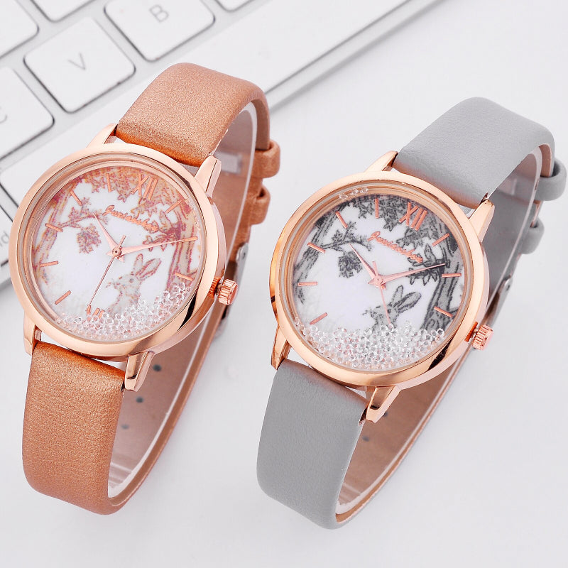 Bright-Colored Rabbit Patterned Dial with Leather Strap Quartz Watches