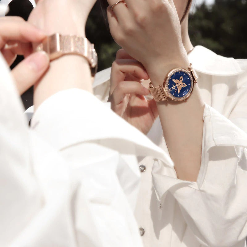 Majestic Butterfly Dial Decorated with Rhinestone Wings Quartz Watches