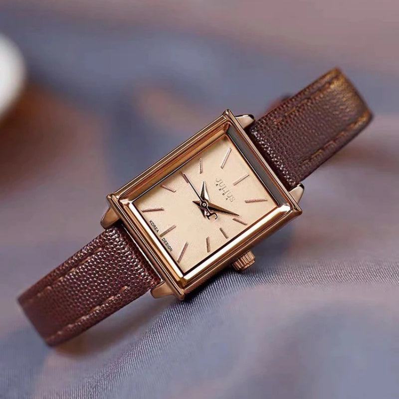 Multi-color Rectangle Case with Vegan Leather Strap Quartz Watches