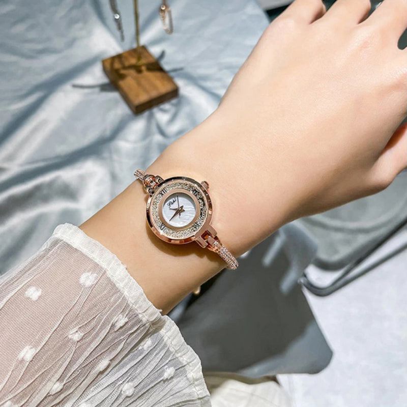 Stylish Round Thin Chain Rhinestone Bracelet Quartz Wristwatches