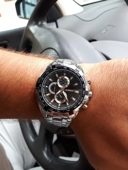 The silver style display has an effortless beauty, fits for business and casual with the hard flex mirror, push-button hidden clasp, the unique shape of the screw-in crown is extremely beautiful for this timepiece.