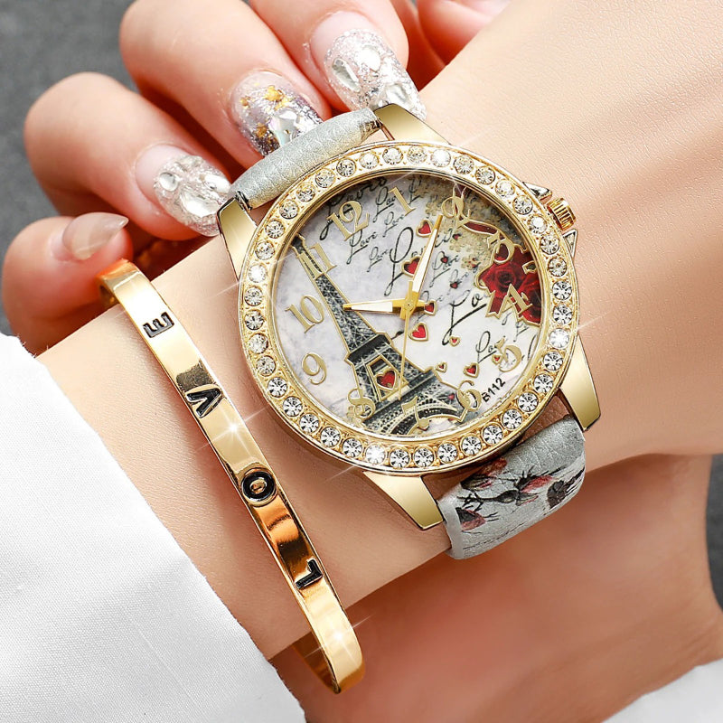 Fashionable Women's Watches with Eiffel Tower and Love-themed Motifs